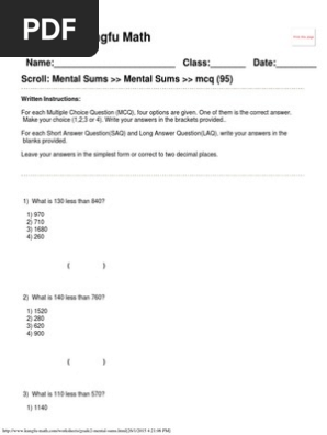 Mental Maths Worksheets - Math Salamanders Mental Maths Worksheets Our selection of mental maths worksheets is a great way of practising your number and maths skills. The sheets can be used in a variety of ways, as a test or revision practise, or as part of a weekly quiz to help reinforce skills. They can also be used as an oral and mental starter to a lesson to get brains working!